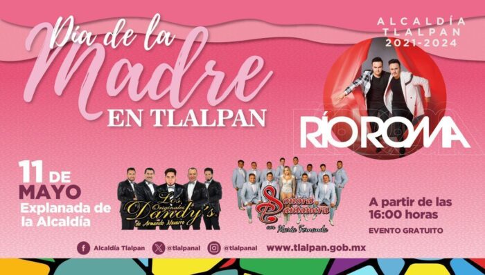 La alcaldía Tlalpan celebrará este Día de la Madre 2024 con un concierto gratuito en la explanada de la demarcación donde se presentará Río Roma, la Sonora Santanera con María Fernanda y Los Originales Dandy’s de Armando Navarro.