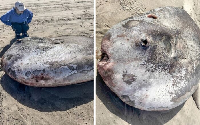 A principios de la semana pasada en la costa de Oregón, en Estados Unidos, apareció un raro pez ‘luna’ de dimensiones impresionantes, aproximadamente 2 metros, según informó el Acuario de Seaside. El ejemplar de mola tecta, fue avistado en la playa de Gearhart y ha captado la atención de multitudes de curiosos.