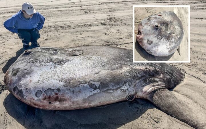 A principios de la semana pasada en la costa de Oregón, en Estados Unidos, apareció un raro pez ‘luna’ de dimensiones impresionantes, aproximadamente 2 metros, según informó el Acuario de Seaside. El ejemplar de mola tecta, fue avistado en la playa de Gearhart y ha captado la atención de multitudes de curiosos.