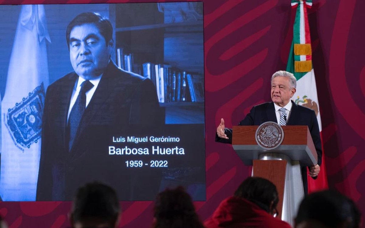 El presidente Andrés Manuel López Obrador lamentó el fallecimiento del gobernador de Puebla, Luis Miguel Barbosa, a quien calificó como un luchador de la democracia y conoció en los años 90 en su estado. Reconoció que con una idea de Barbosa nació la marcha del 27 de noviembre en la Ciudad de México para conmemorar los cuatro años de la "cuarta transformación".