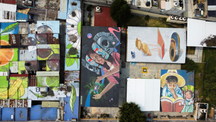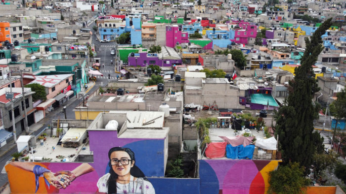 Coloridos murales de mujeres, niños jugando, personajes populares mexicanos y hasta frutas decoran las calles y azoteas de la alcaldía Iztapalapa en la Ciudad de México.