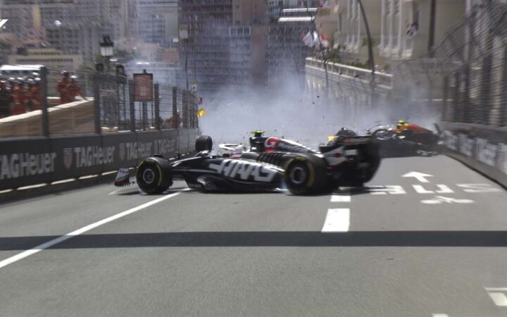 En la subida desde Santa Devota al Casino, Magnussen embistió por detrás al RB20 del mexicano, que a su vez tocó el Haas de Hülkenberg. El coche de ‘Checo’, subcampeón del mundo el año pasado y que afrontaba la carrera en el tercer puesto del Mundial, quedó completamente destrozado, aunque el bravo piloto tapatío salió del mismo por su propio pie y se encuentra bien, al igual que los dos integrantes de la escudería Haas.