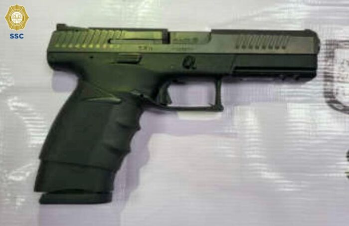 En el sitio le marcaron el alto y le solicitaron una revisión de seguridad, conforme al protocolo de actuación policial, tras la cual le hallaron un arma de fuego corta y nueve cartuchos útiles.