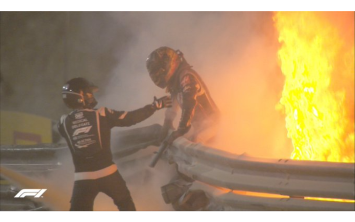 Salió, literalmente, de entre las llamas. Romain Grosjean (Haas) se encuentra fuera de peligro, tras sufrir un gravísimo accidente al inicio del Gran Premio de Baréin, penúltima fecha del calendario 2020 de la Fórmula 1, en el que su monoplaza se estrelló contra los guardarraíles, se partió en dos y quedó envuelto en llamas.